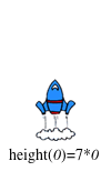 A rocket blasts off, traveling at 7 meters per second. Write a function called rocket-height that takes in the