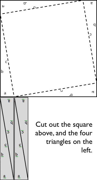 into two smaller squares, but in total it remains the same size. By using the side-lengths A and B, one can calculate the area of the two squares.